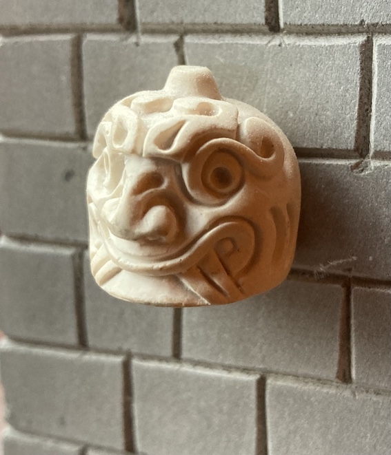 In de tempelmuren waren meerdere van deze priesterhoofden aangebracht.