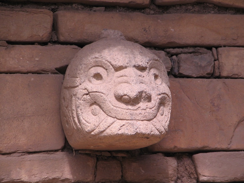 Hoofd dat uit de muur steekt, zoals in Chavín de Huantar.
