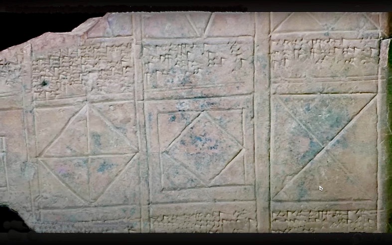 In Babylon kwam Pythagoras in aanraking met babylonische meetkundige figuren, zoals op dit kleitablet is te zien: vierkanten en sommige met diagonalen.
