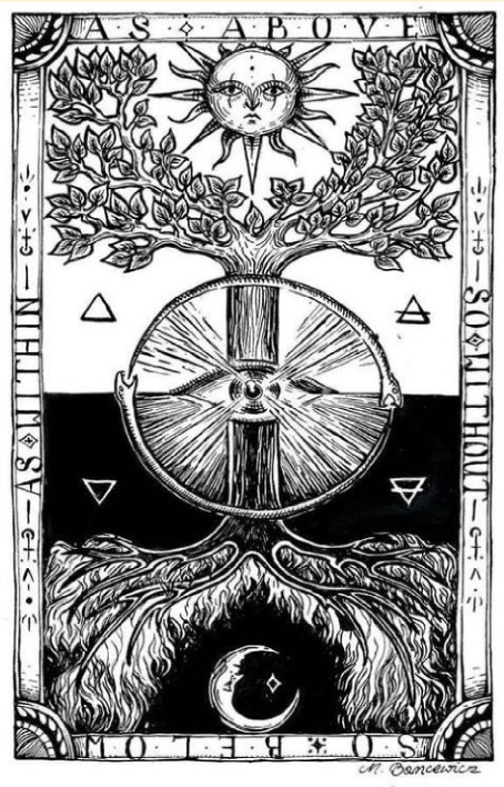 De Eeuwige Vader van alle dingen, die niet minder wijs is in het ordenen, dan machtig in het scheppen van de wereld, heeft het hele universum samenhangend gemaakt door middel van geheime invloeden en wederzijdse onderwerping en gehoorzaamheid, waarbij de dingen beneden oereenstemmen met de dingen boven, en vice versa; zodat beide uiteinden van de wereld niettemin verenigd zijn door een hechte band van natuurlijke samenhang. (The All-Wise Doorkeeper)