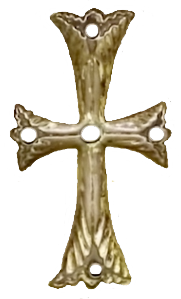 ongelijkbenige kruisen op zijn stola de betekenis van de gestileerde levensboom; om het snijpunt van de benen bevinden zich de zonnestralen van het zonnewiel en ook op de uiteinden van de benen bevinden zich vier punten.
