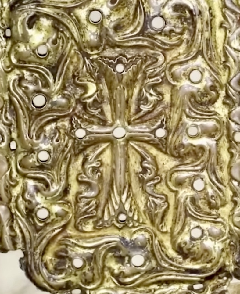 Op zijn stola zijn ongelijkbenige kruisen afgebeeld met de vorm van de levensboom.
